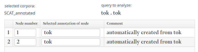 Откроется вкладка частотного анализа. Изначально строки создаются для узлов, присутствующих в запросе. Например, для следующего запроса автоматически создаются две строки: